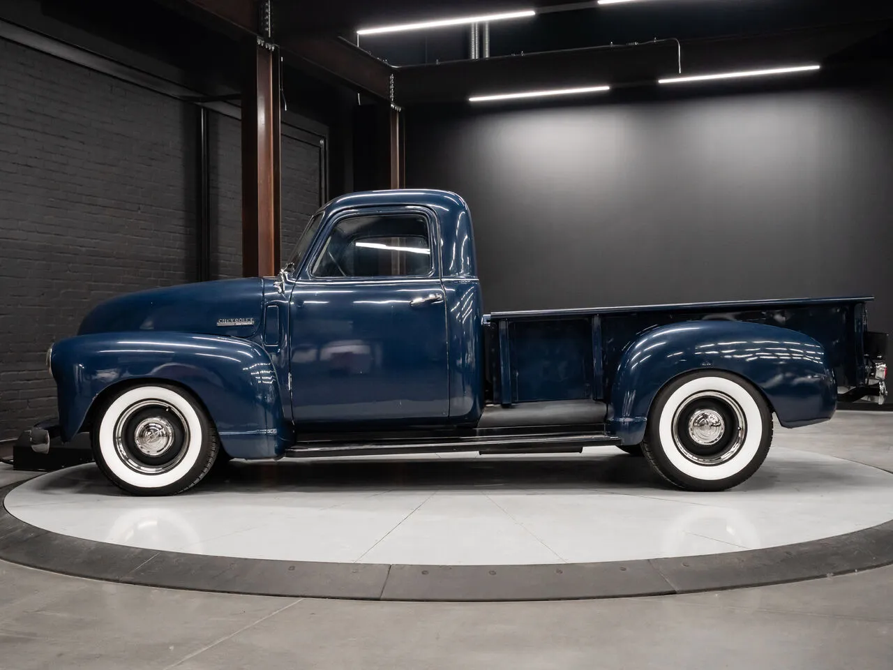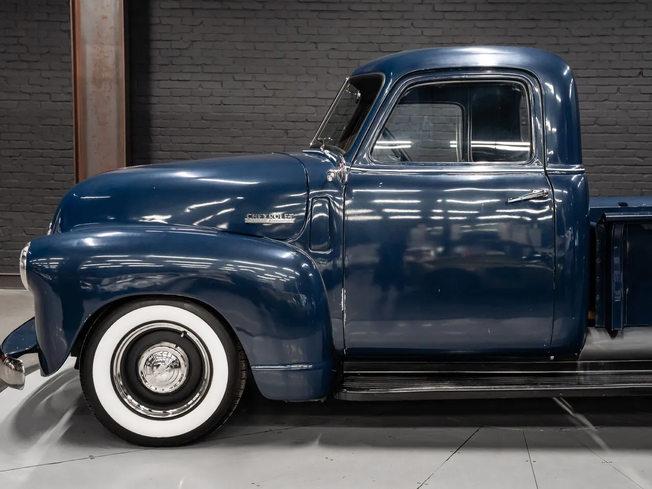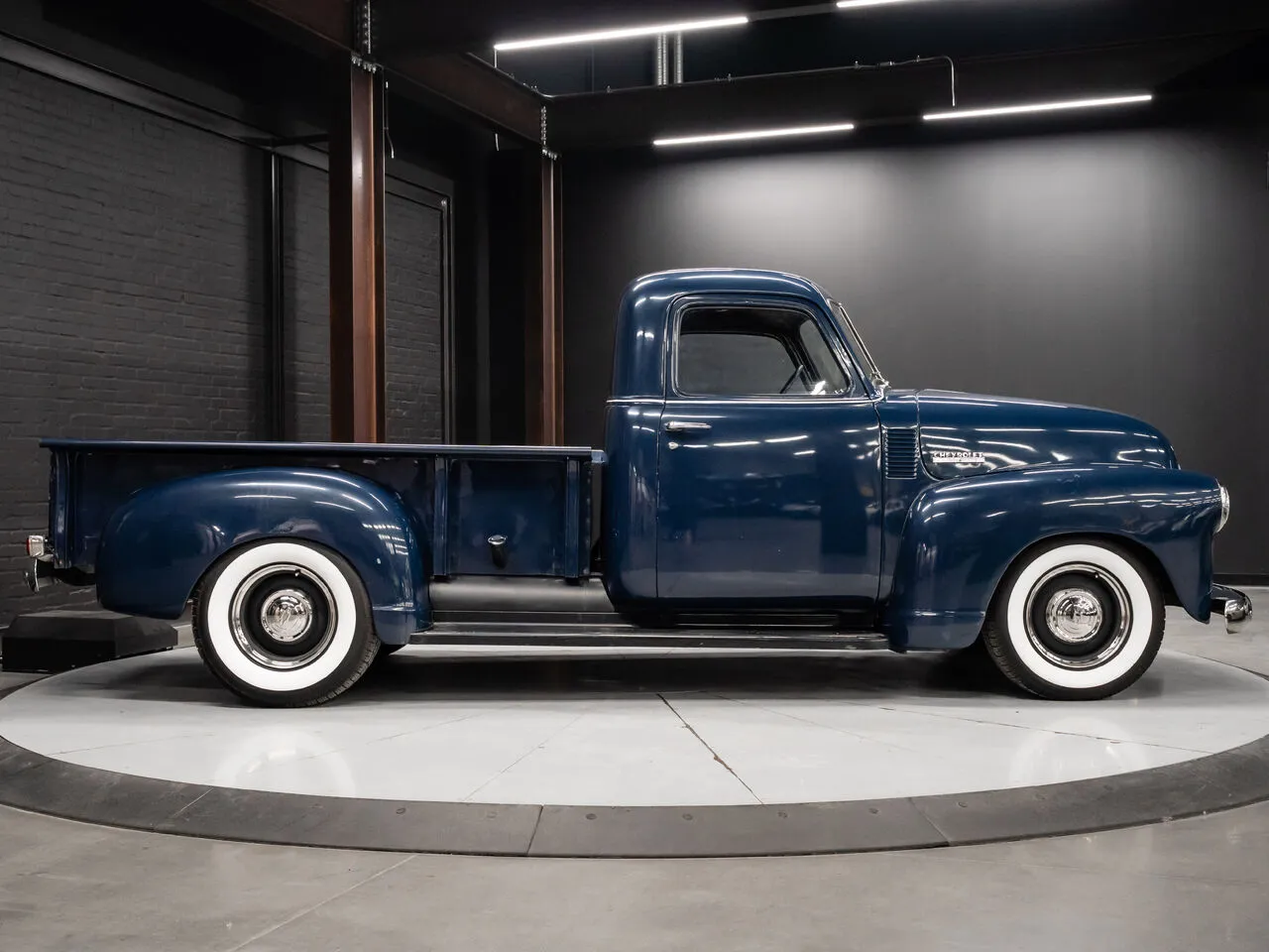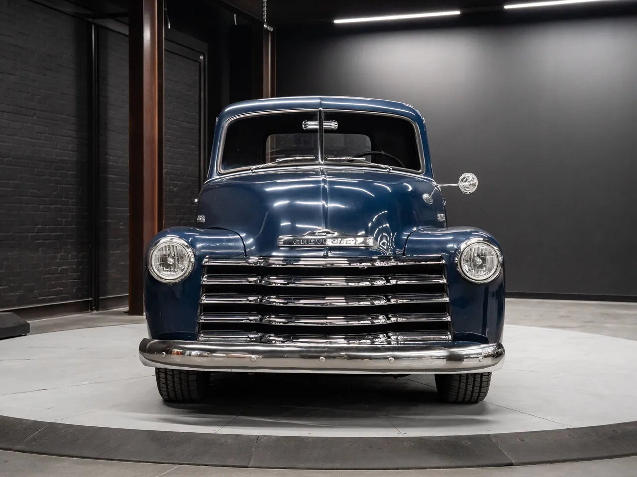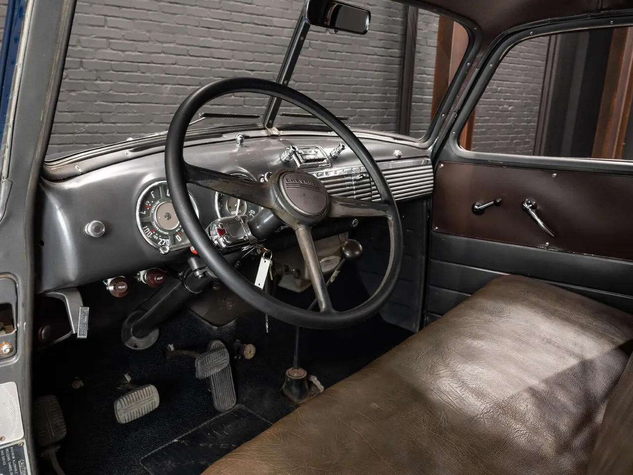 1947 Chevrolet Thriftmaster Pickup finished in blue over brown, paired with a manual transmission and rear-wheel drive.