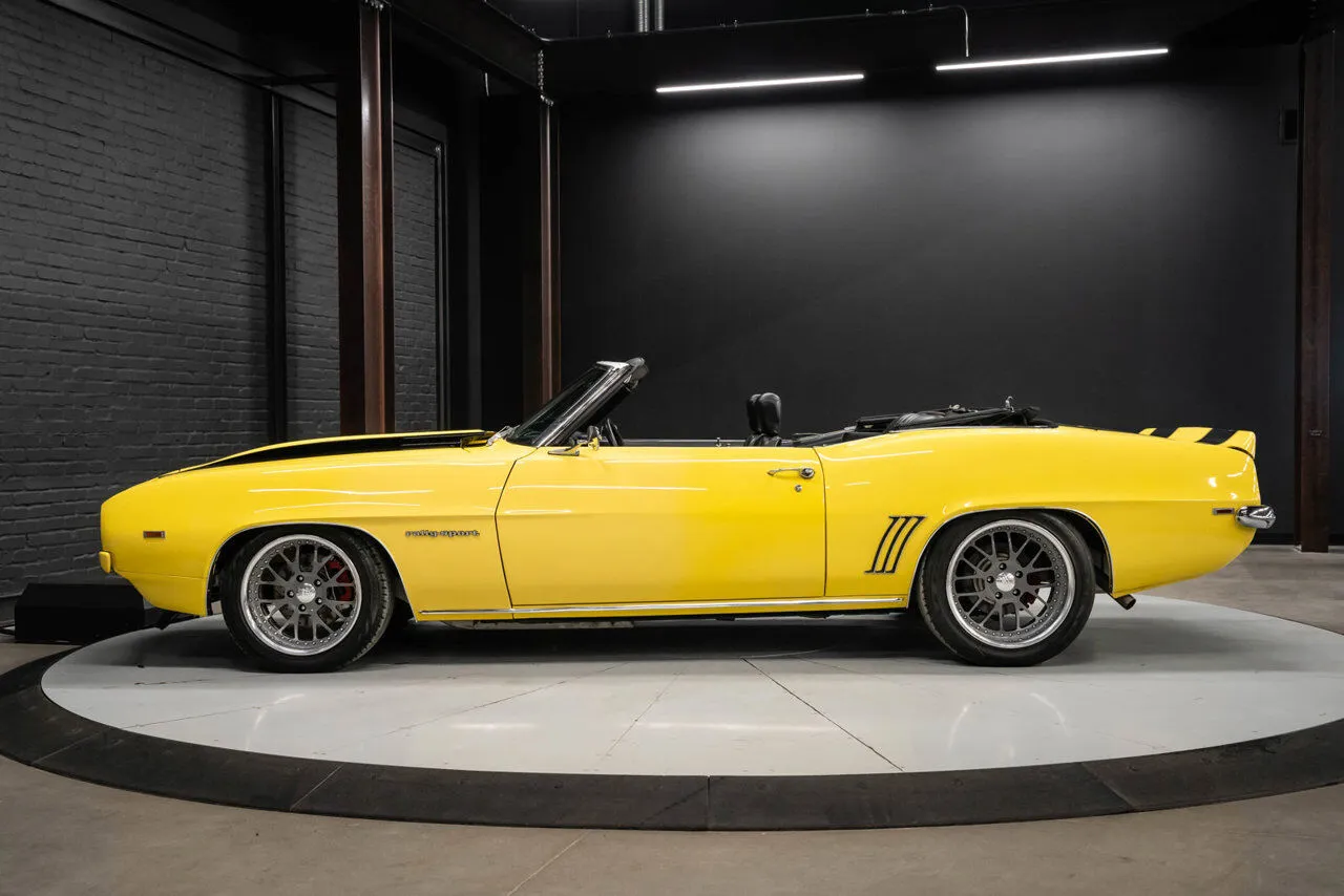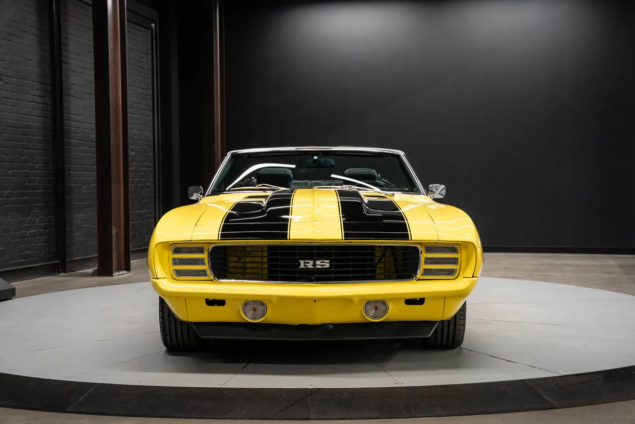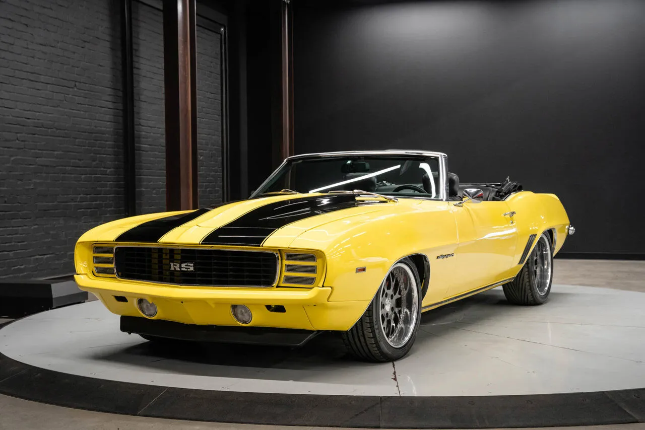 1969 Chevrolet Camaro in yellow over black with a TCI Pro-Touring chassis and manual transmission.