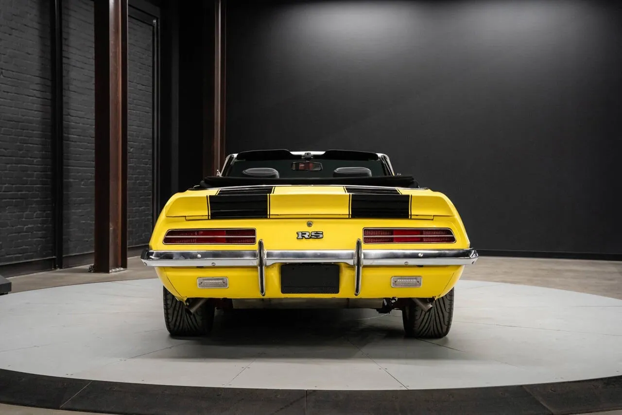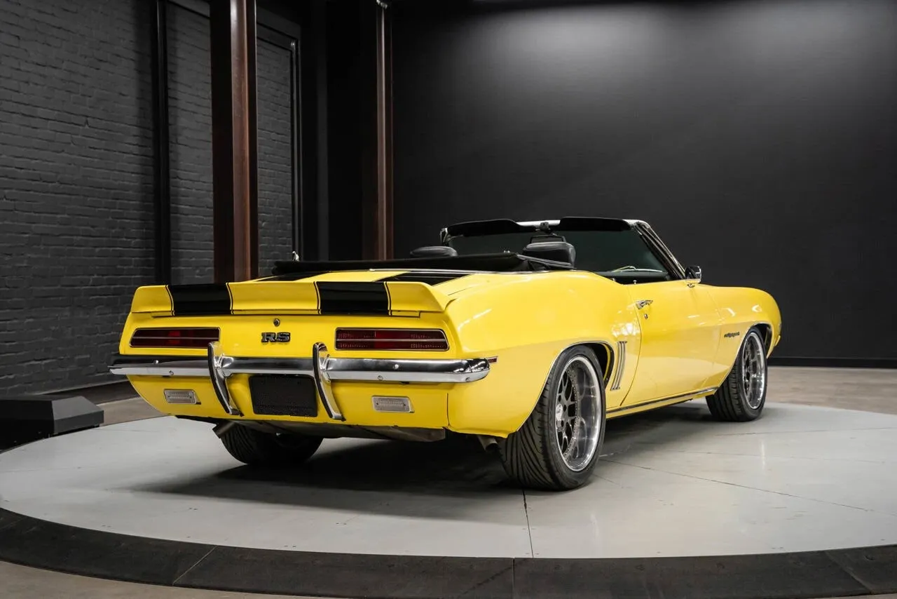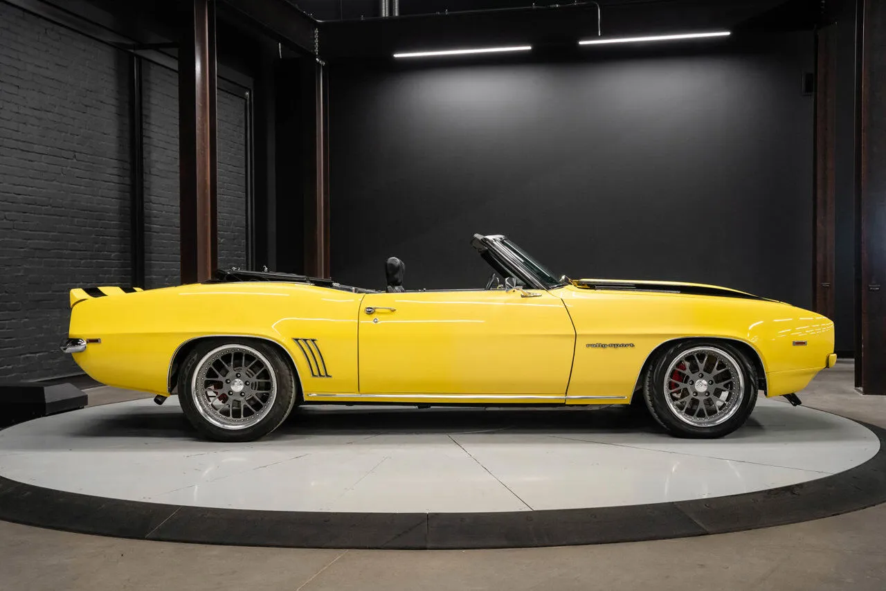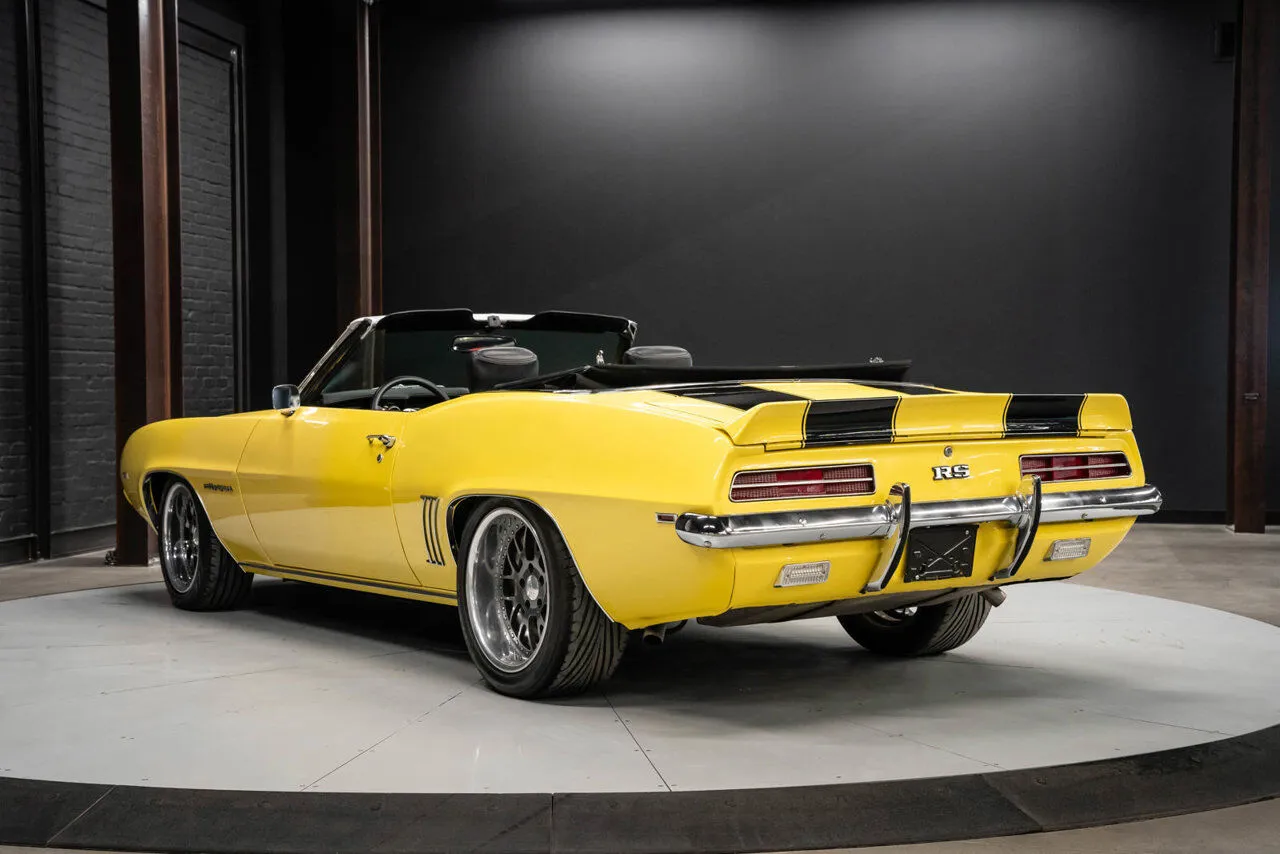 1969 Chevrolet Camaro in yellow over black with a TCI Pro-Touring chassis and manual transmission.