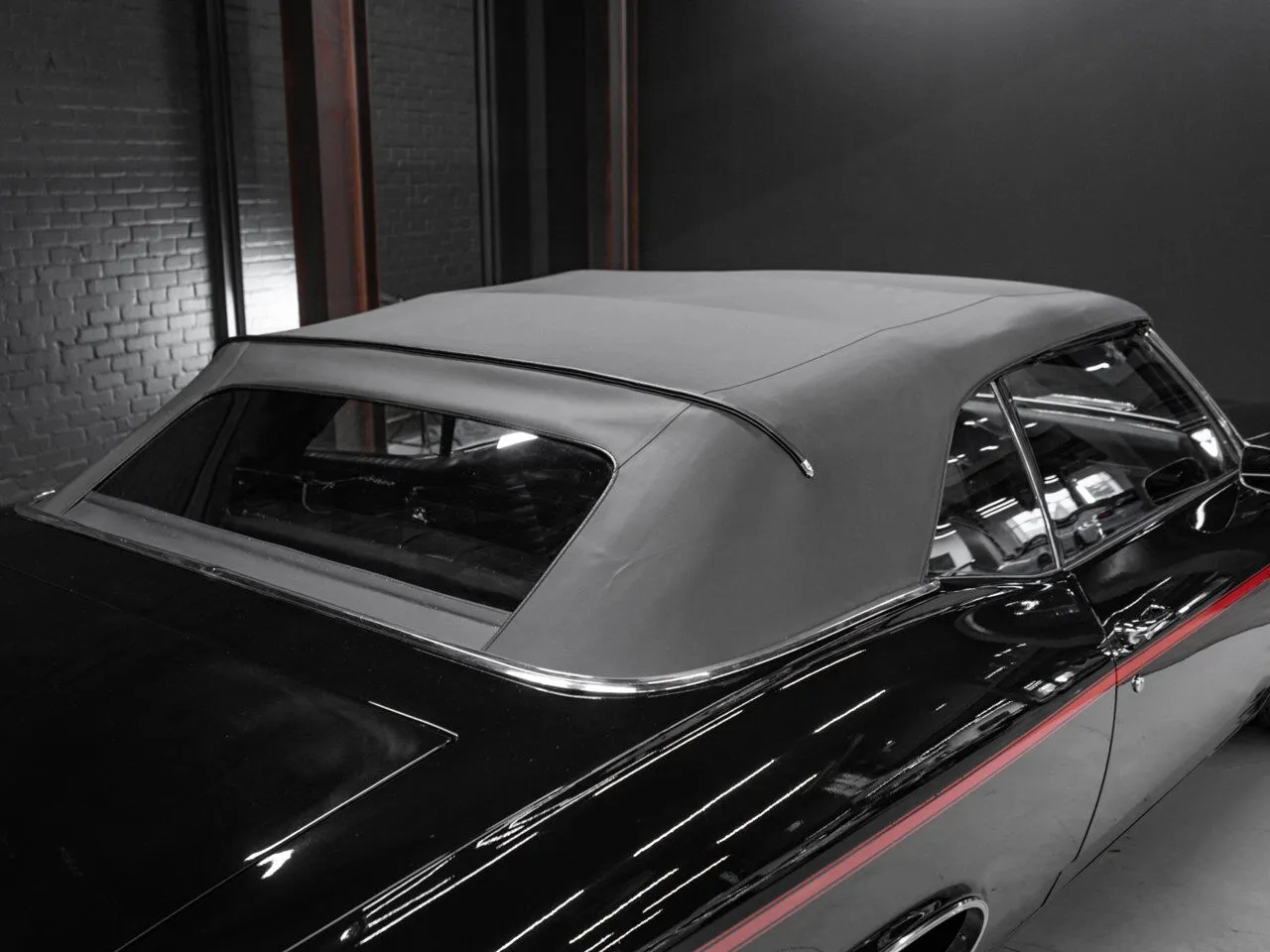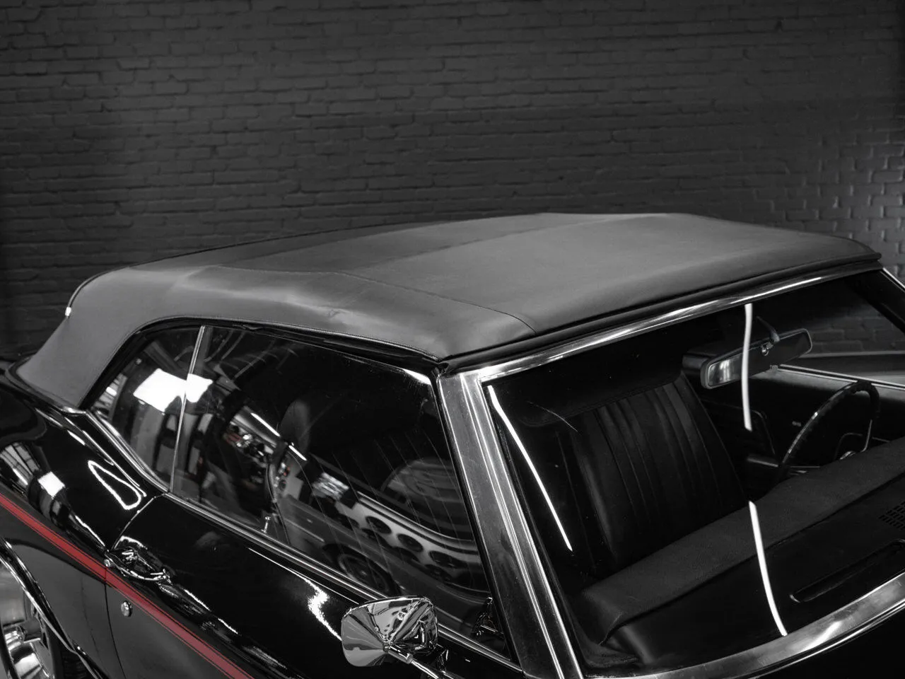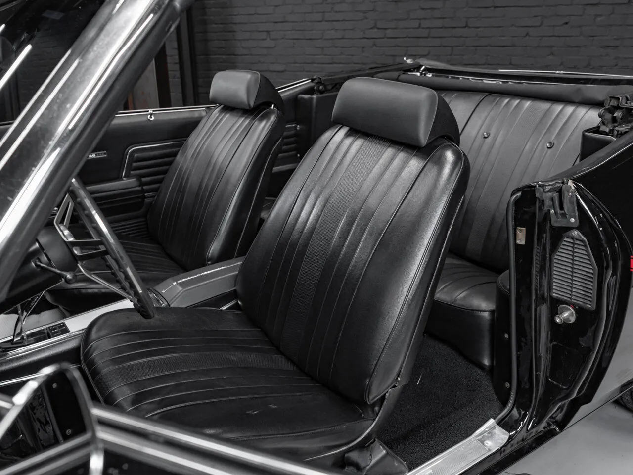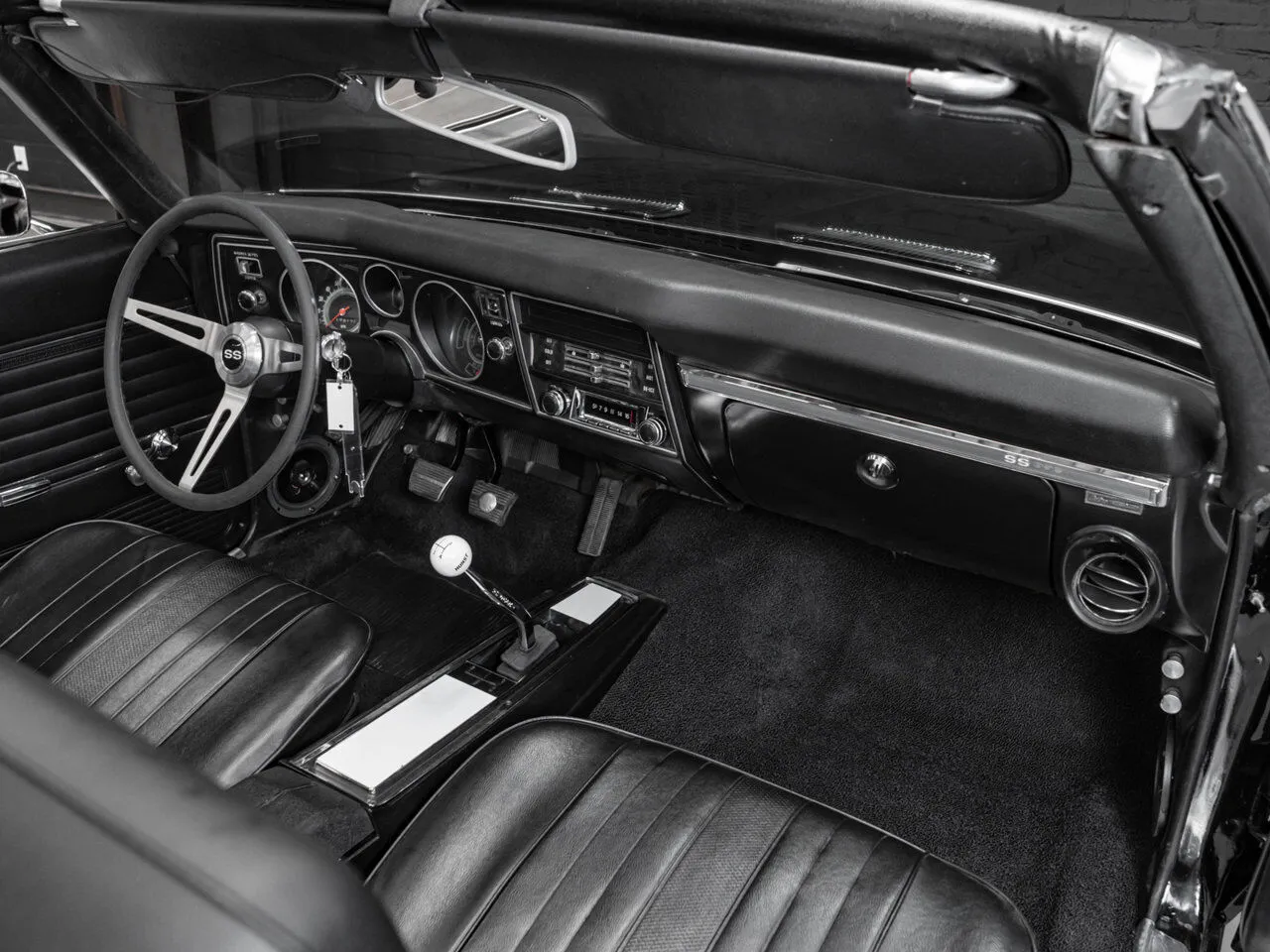 1969 Chevrolet Chevelle SS 396 in black over black, fully restored and paired with a 4-speed manual transmission.