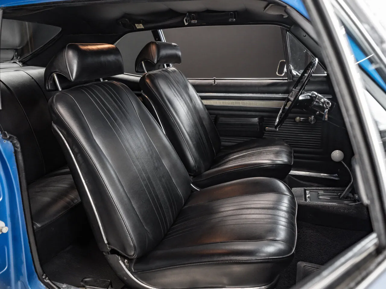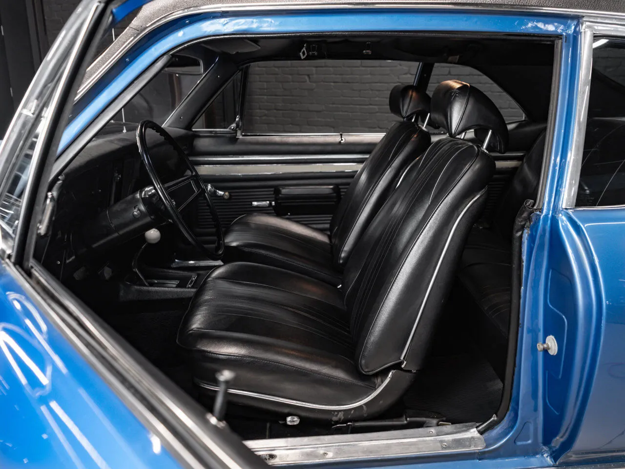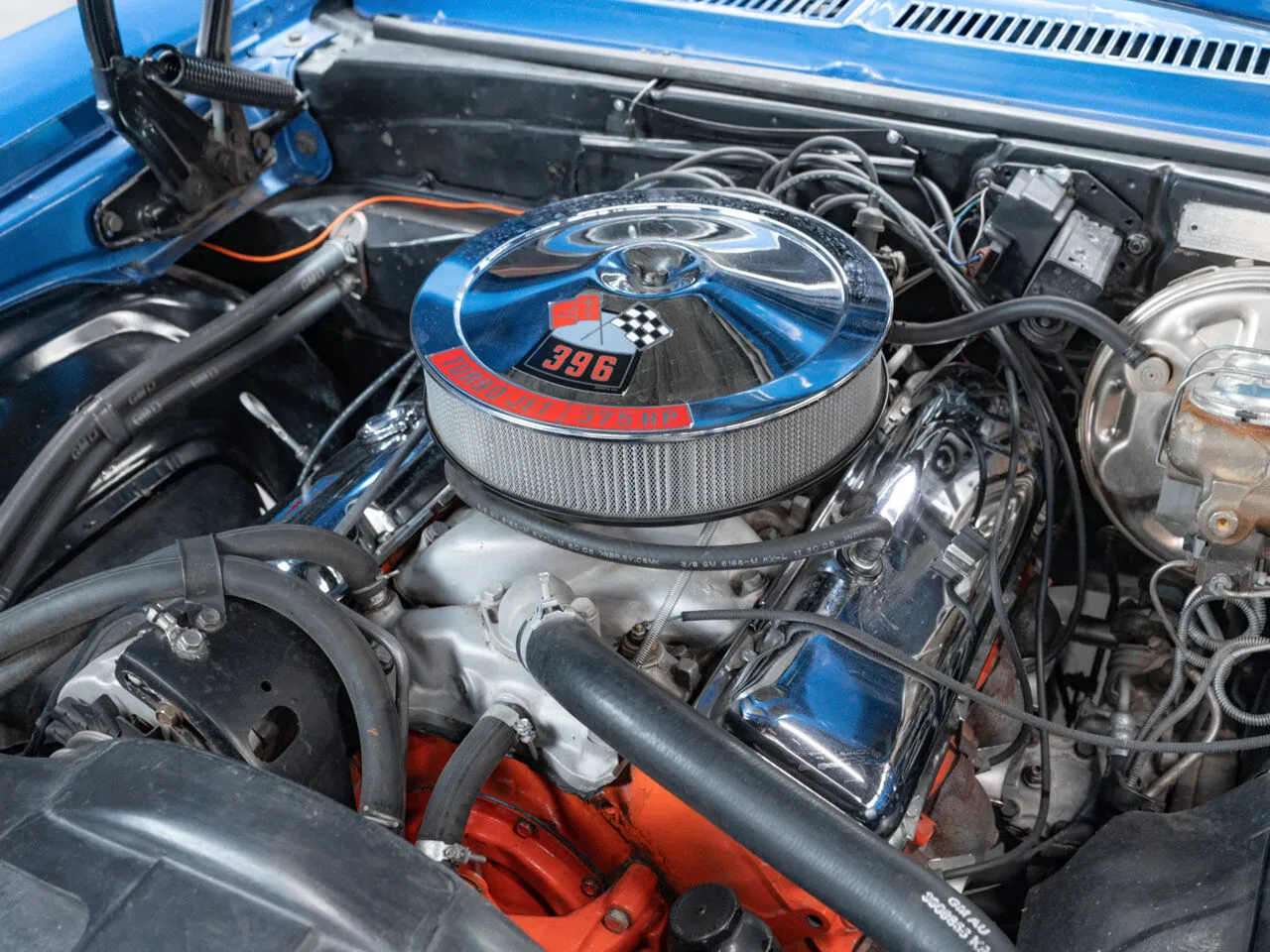 1969 Chevrolet Nova SS 396 finished in blue over black, powered by a 396 cu. in. V8 and manual transmission.